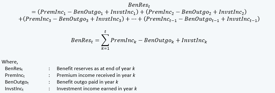 BenRest = BenRest-1 + (PremInct – BenOutgot + InvstInct)
