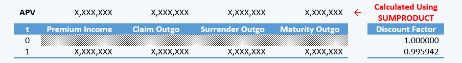 Please note that the 2nd method cannot be used to calculate reserving under sterling reserve method (common reserving method for investment-linked products). For statutory reporting in Malaysia, it is common to report individual APV components in the annual valuation reports.